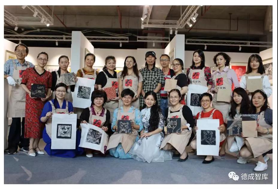 參加現(xiàn)場版畫教學的嘉賓,都是社會上的優(yōu)秀的女性,她們正奔波于人生事業(yè)頂峰的年齡,職場的忙碌不得不收斂著內(nèi)心對藝術(shù)的奢望。在這個完全充滿藝術(shù)的世界,她們覺得身心在藝術(shù)實踐中得到了徹底地釋放,非常開心。現(xiàn)場有不少觀眾走近內(nèi)場的大師活動區(qū),希望打探到下一次參與學習的機會。