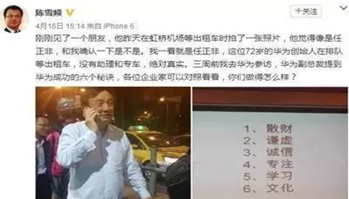 圖2 任正非一個(gè)人深夜在上海虹橋機(jī)場(chǎng)等出租車